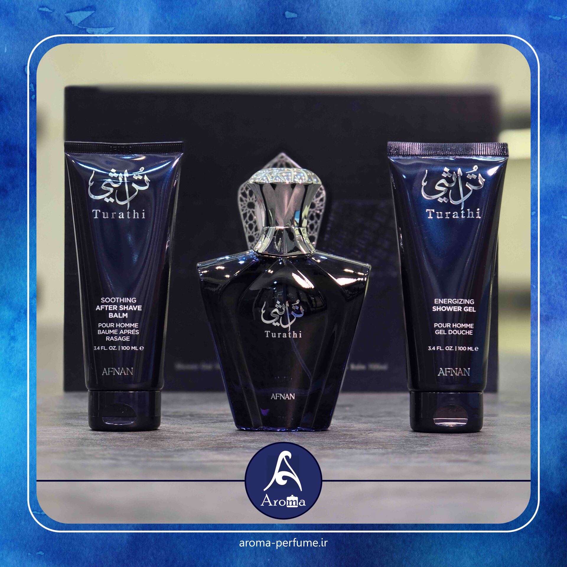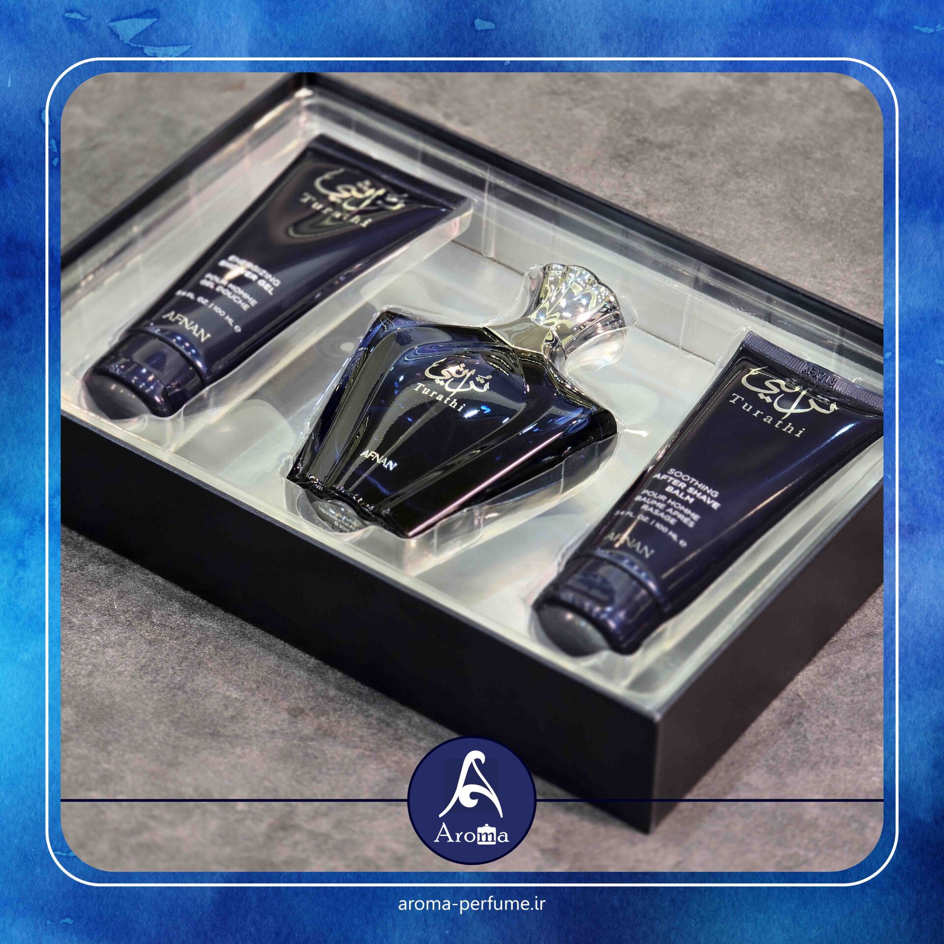 گالری آروما پرفیوم با دقت بهترین عطرها را از معتبرترین برندهای دنیا گلچین میکند و Turathi Blue افنان یکی از پرفروشترین انتخابهای اروما برای آقایانی است که میخواهند همیشه خوشبو، شیک و تأثیرگذار باشند.